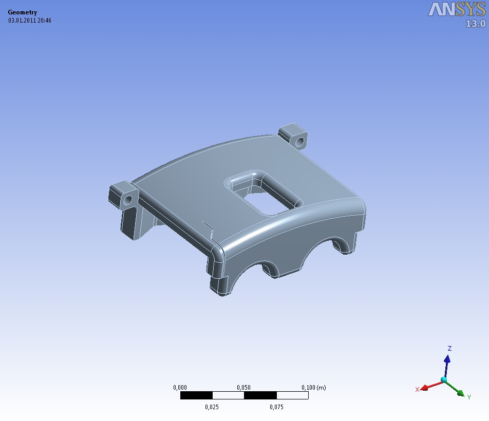 Суппорт нагружается двумя равными и противоположными по направлению силами от тормозных колодок. Величина нагрузки была определена теоретически и составляет 17045Н. Другими силами можно пренебречь в виду их незначительности.