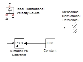 На входной порт S блока “Ideal translational velocity source” поступает физический сигнал, задающий нужную скорость. Порт R является выходным и соединен с поршнем цилиндра. Порт C связан с системой отсчета физического сигнала.